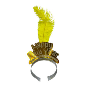 1pc Happy New Year Feather Tiara, Yellow – New Year Party Photo Props