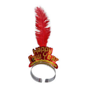 1pc Happy New Year Feather Tiara, Red – New Year Party Photo Props