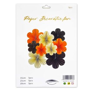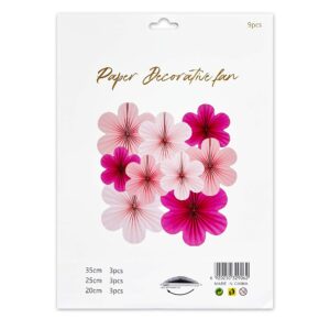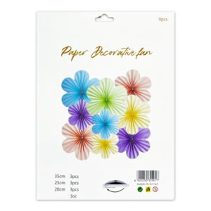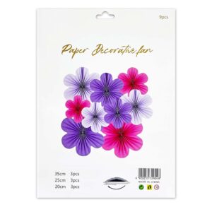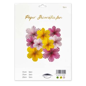 9pcs Set of Multicolor Flower Hanging Paper Fans – Party Decoration