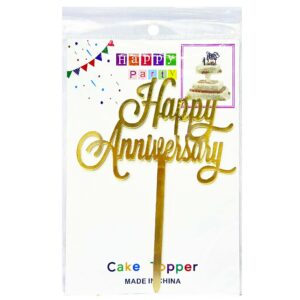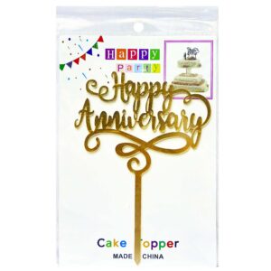 1pc Cursive Happy Anniversary Cake Topper, Gold