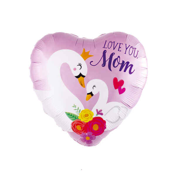 1pc 18inch Heart Love You Mom Foil Balloon, Swan