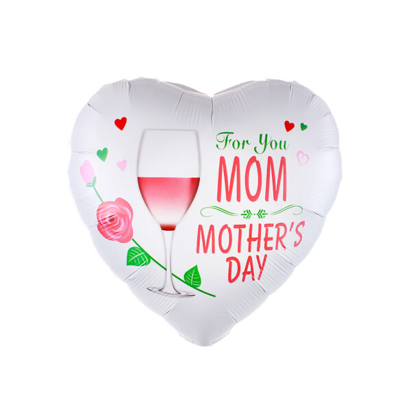 1pc 18inch Heart Mother’s Day Foil Balloon, Flower & Wine