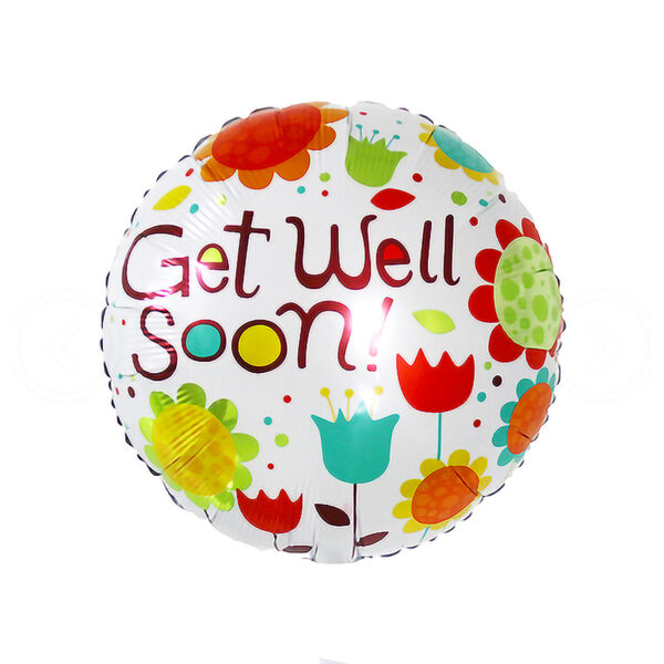 1pc 18″ Round Get Well Soon Foil Balloon, Flowers