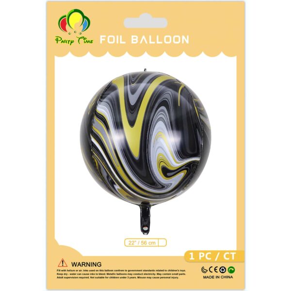 1pc 22″ Black Marble Orb Foil Balloon, Party Decoration