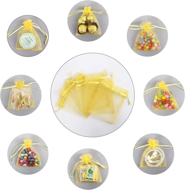 100pcs 9x12cm Organza Bags with Drawstrings, Yellow – Party Favor Bags & Give Away Bags