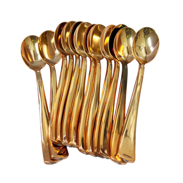 12-Pieces Rose Gold Metallic Plastic Spoons – Disposable Party Tableware