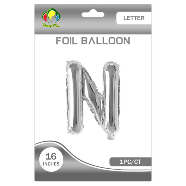 16″ Letter N Foil Balloon, Silver