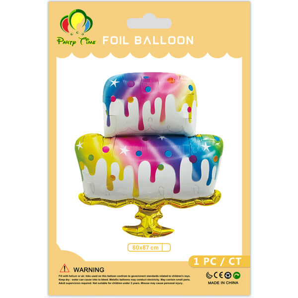 This foil balloon features a rainbow cake. Mix and match this balloon with other theme decorations like latex and foil balloons to set the scene for a perfect party.
