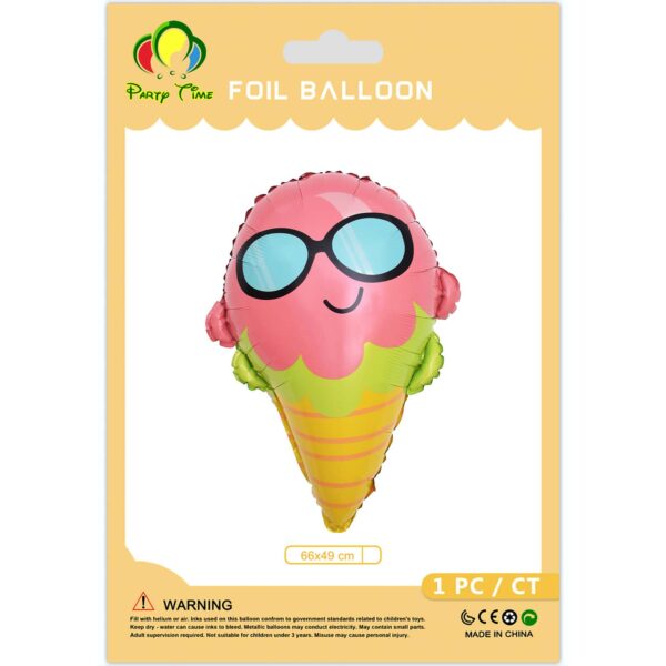 This foil balloon features an ice cream with eyeglasses. Mix and match this balloon with other theme decorations like latex and foil balloons to set the scene for a perfect party.