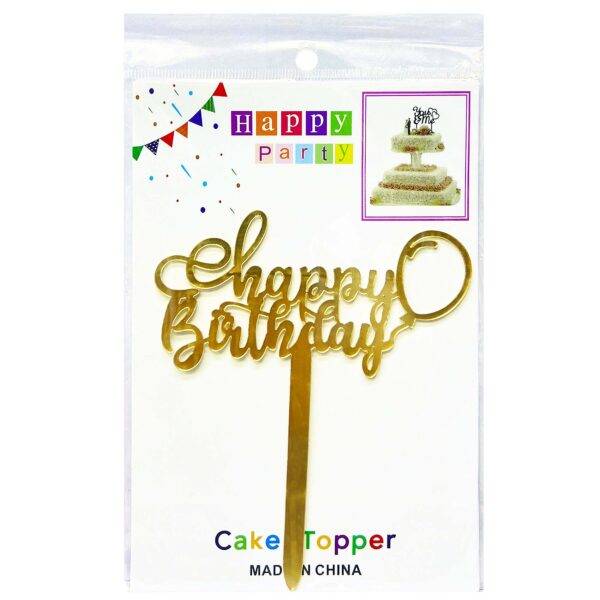 1pc Cursive Happy Birthday Cake Topper, Gold