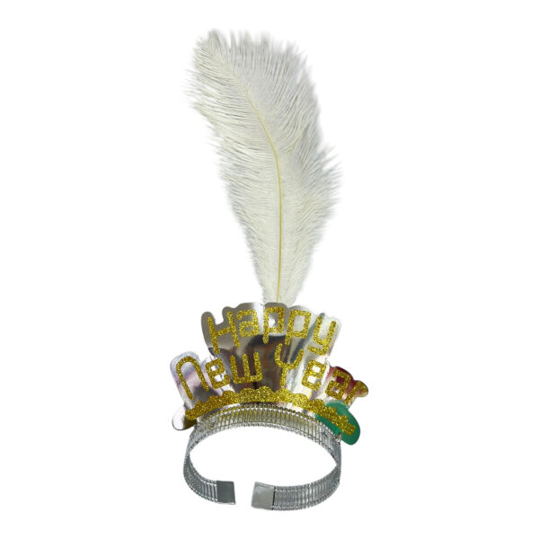 1pc Happy New Year Feather Tiara, White – New Year Party Photo Props