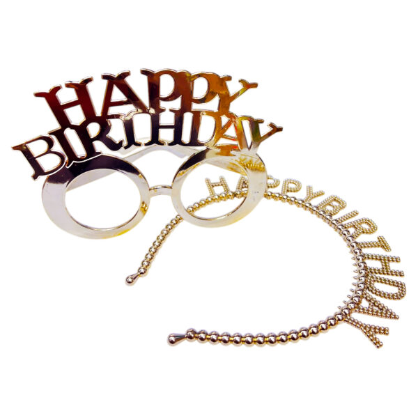 2pcs Set of Rose Gold Happy Birthday Headband & Eyeglasses Set – Party Accessories