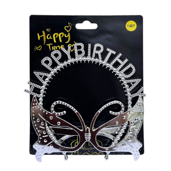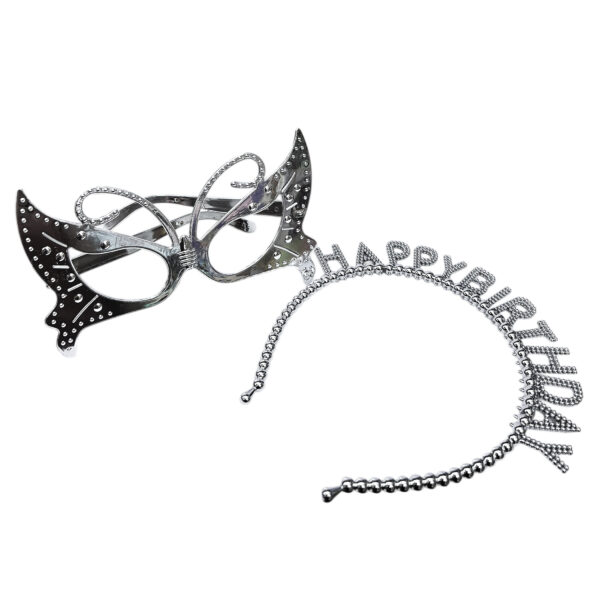 2pcs Set of Silver Happy Birthday Headband & Eyeglasses Set – Party Accessories