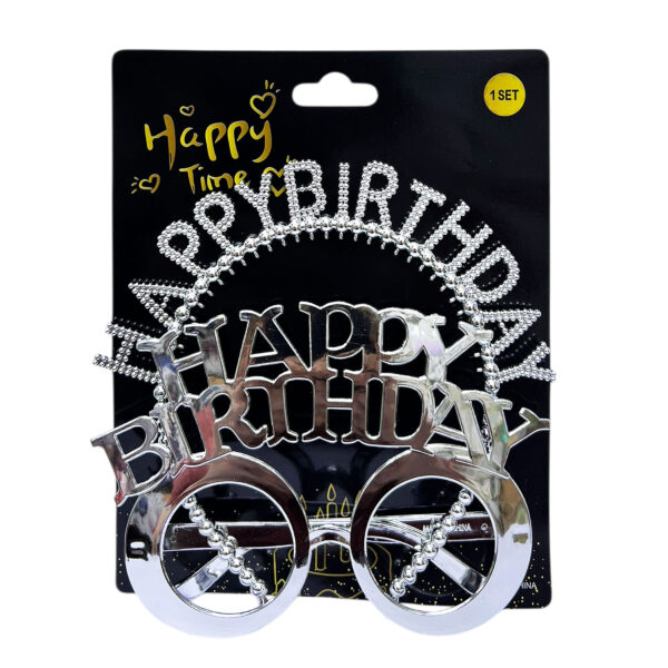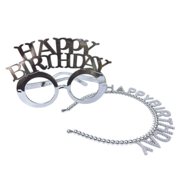 2pcs Set of Silver Happy Birthday Headband & Eyeglasses Set – Party Accessories