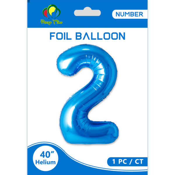 40″ Number 2 Foil Balloon, Blue