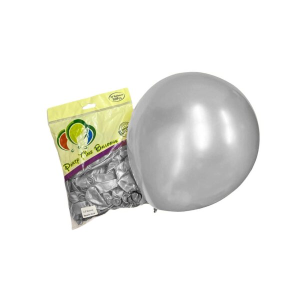 50pcs 10″ 2.2g Party Time Metallic Silver Latex Balloons