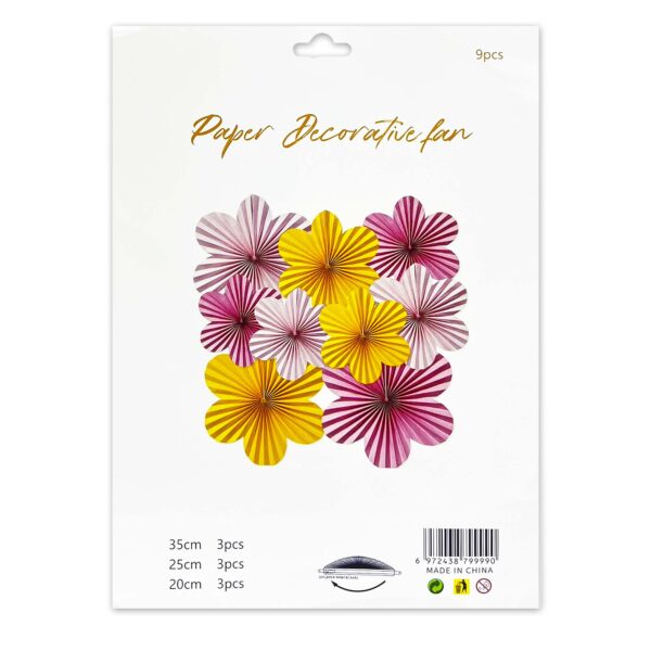 9pcs Set of Multicolor Flower Hanging Paper Fans – Party Decoration