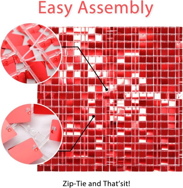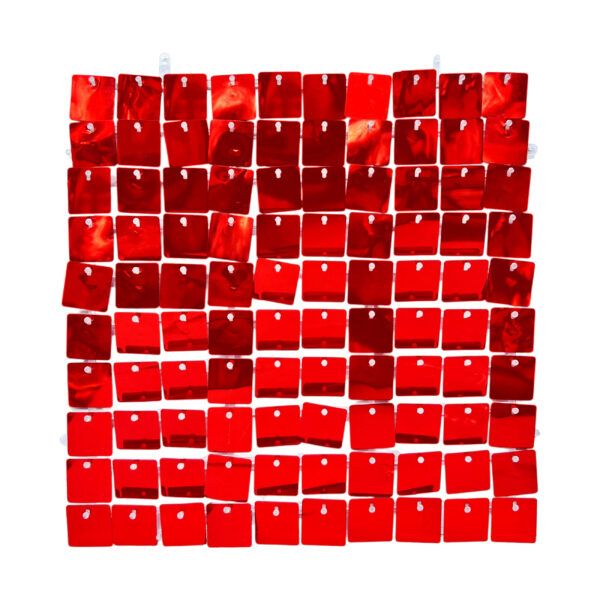 Box of 50 30x30cm Shiny Red Sequin Panels Wall Backdrop, Party Decoration