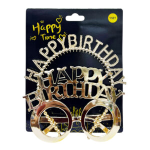 2pcs Set of Gold Happy Birthday Headband & Eyeglasses Set – Party Accessories